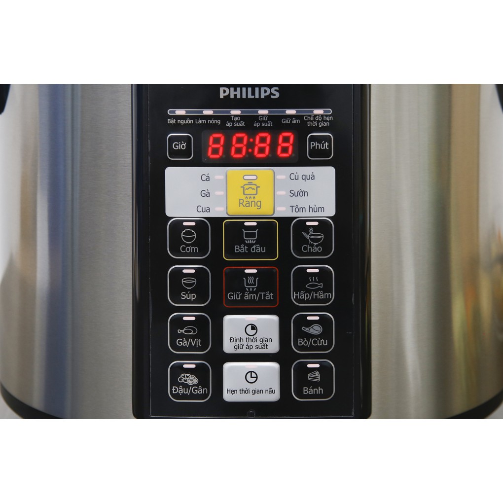 Cài đặt thời gian nấu: Nồi áp suất Philips HD2136 cho phép bạn cài đặt thời gian nấu thực lên tới 5 tiếng, bạn dễ dàng sắp sếp thời gian để chuẩn bị những món ngon cho gia đình mà không tốn quá nhiều thời gian chuẩn bi so với các nồi áp suất thông thường.