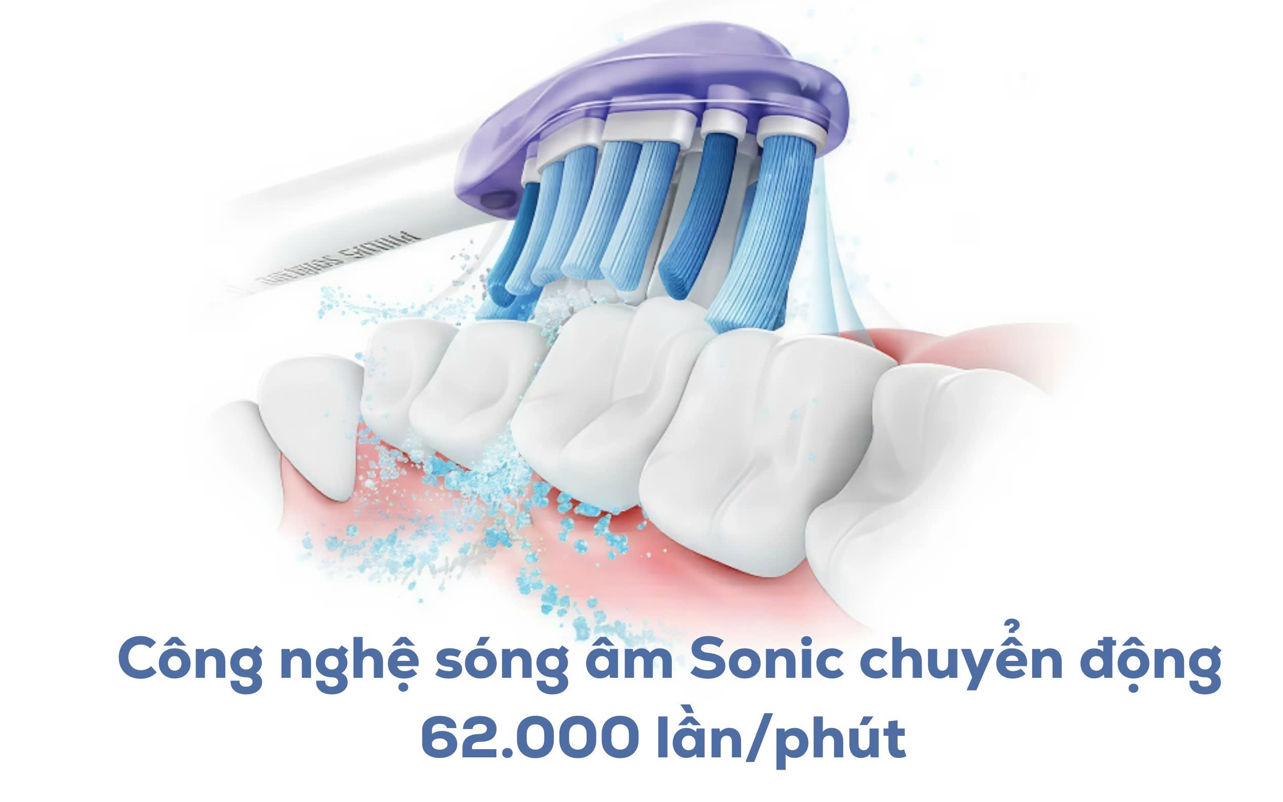 Sức mạnh làm sạch của bàn chải điện Philips HX9911/73 đến từ công nghệ sóng âm Sonicare Fluid Action, tạo ra 62.000 chuyển động lông bàn chải mỗi phút. Lực rung mạnh mẽ này không chỉ làm sạch bề mặt răng một cách nhẹ nhàng mà còn tạo ra các vi bọt khí chứa chất lỏng, đưa chúng len lỏi sâu vào kẽ răng và dọc theo đường viền nướu. Điều này giúp loại bỏ hiệu quả mảng bám và vi khuẩn ở những nơi khó tiếp cận nhất, mang lại cảm giác sạch sẽ toàn diện.