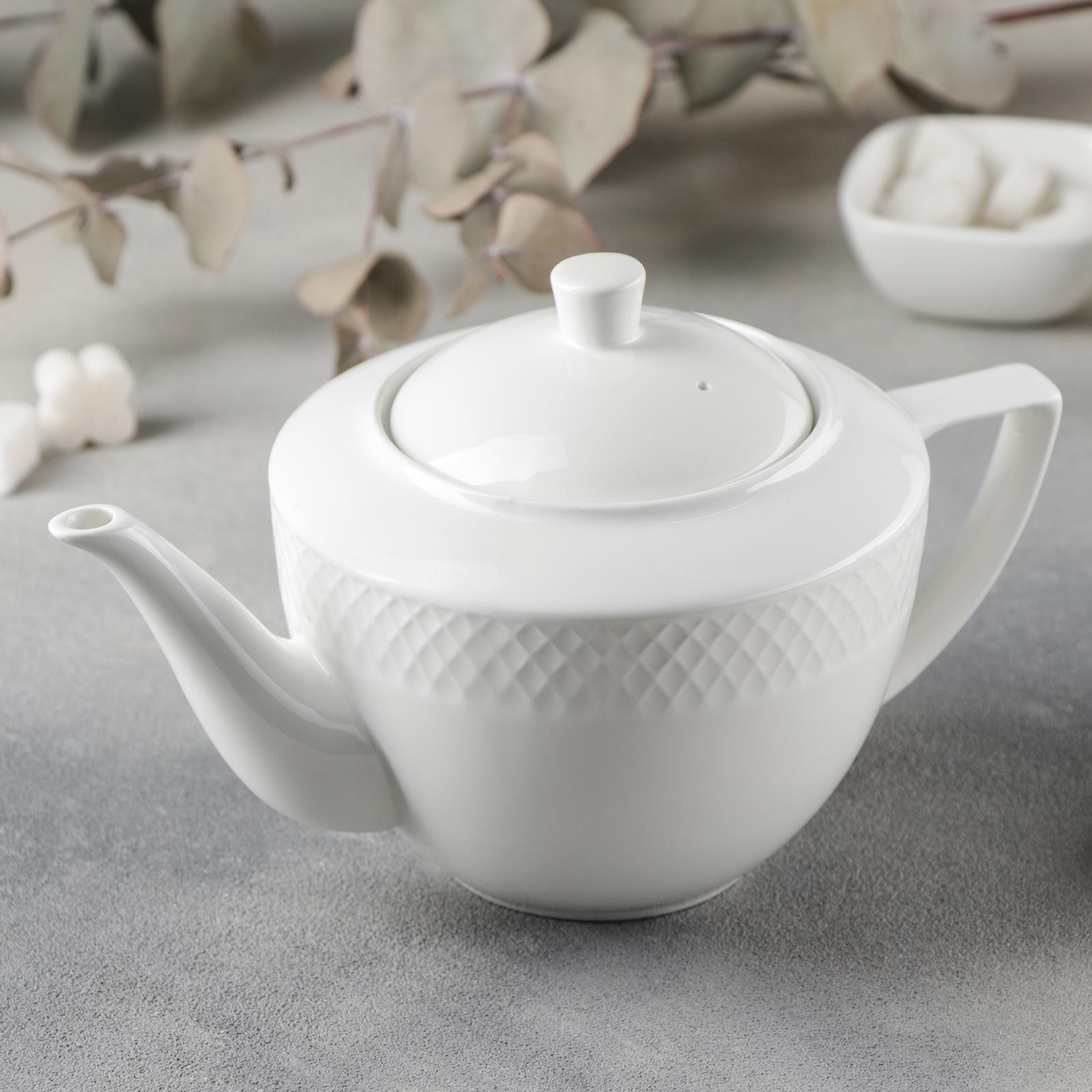 Bình (ấm) trà sứ Wilmax, Diamond White, 900ml, vân hình kim cương.