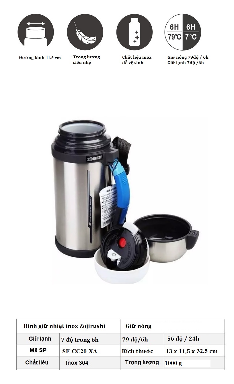 Sản phẩm có thể dùng giữ nóng và lạnh tiện ích, với nhiệt độ nóng 80 độ C/6 giờ, 60 độ C/24 giờ và nhiệt độ lạnh 7 độ C/6 giờ.