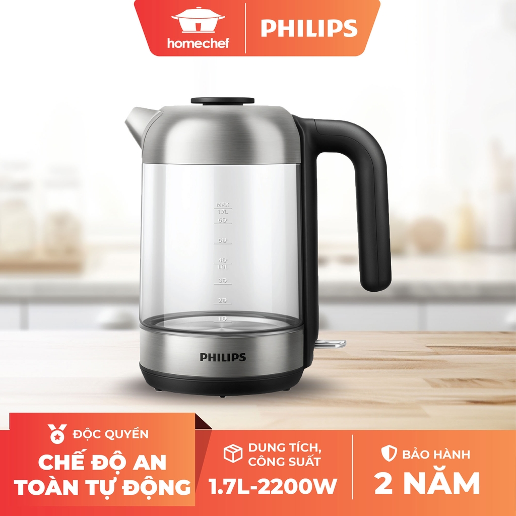 Bình siêu tốc Philips HD9339/80 có dung tích 1,7l được thiết kế hiện đại với chất liệu thủy tinh trong suốt dễ dàng quan sát quá trình đun nước