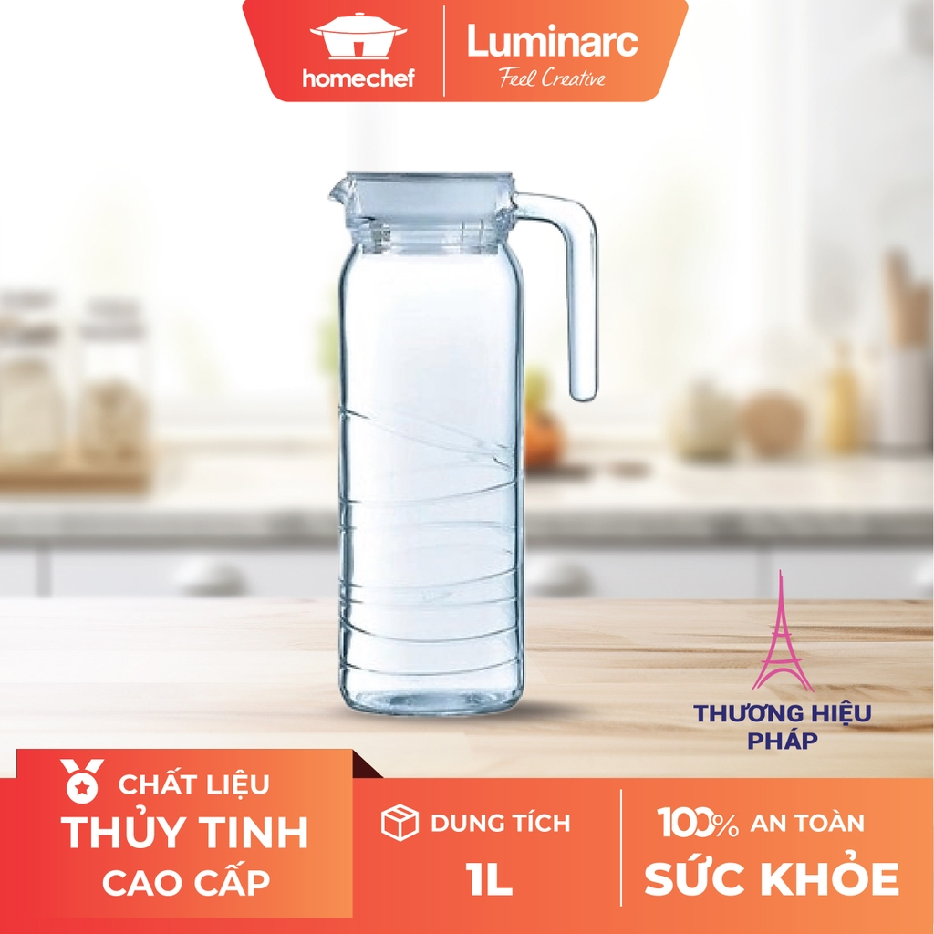- Sản phẩm sang trọng nhờ vào độ sáng bóng và trong suốt của thủy tinh cao cấp. Bình có tay cầm lửng độc đáo được làm bằng thủy tinh và liền với thân bình, vừa đẹp mắt vừa dễ dàng cầm nắm. Bình nước dung tích 1L, thiết kế dạng thân cách điệu tạo nên nét tinh tế riêng biệt.