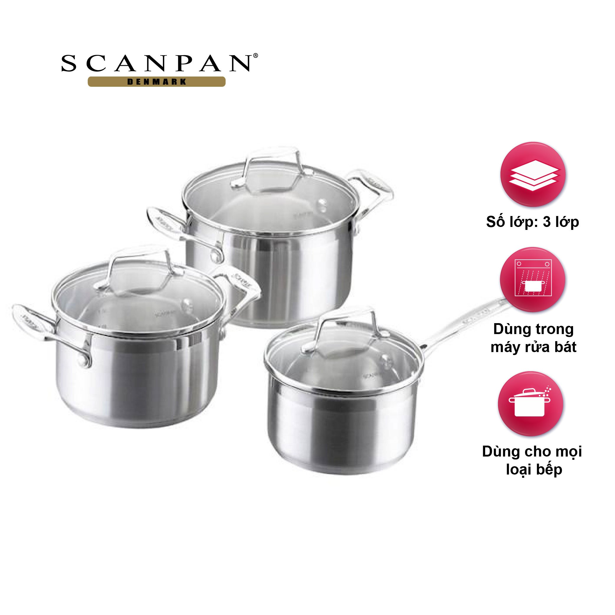 Bộ inox từ Scanpan Impact 3 chiếc được đúc 3 lớp với công nghệ đúc nén độc quyền của Scanpan giúp chảo phân bổ nhiệt đều, truyền nhiệt nhanh và giữ nhiệt lâu, bạn sẽ dễ dàng kiểm soát nhiệt độ