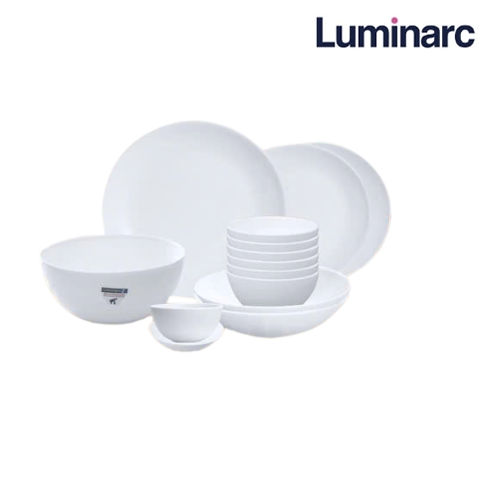 Bộ bát đĩa thủy tinh Luminarc Diwali 14 chi tiết với màu trắng tinh khiết, thiết kế theo phong cách truyền thống với kiểu dáng tròn và trơn nhưng không kém sang trọng và tinh tế. Với dòng sản phẩm này, phòng ăn nhà bạn sẽ trở nên trang nhã mà không kém phần tươi mới, giúp cho cả nhà bạn có được những bữa ăn ngon miệng và đẹp mắt.