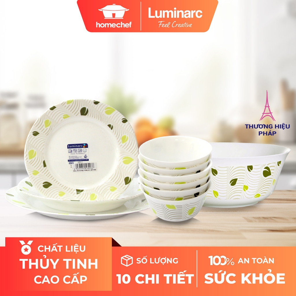 Bộ bát đĩa thủy tinh Luminarc Amely 10 chi tiết với nền trắng thanh lịch, thiết kế hiện đại kết hợp với hoa văn đặc biệt theo phong cách Pháp đảm bảo cả tính thẩm mỹ và sự tiện dụng cho bạn. Với dòng sản phẩm này, phòng ăn nhà bạn sẽ trở nên trang nhã mà không kém phần tươi mới, giúp cho cả nhà bạn có được những bữa ăn ngon miệng và đẹp mắt.