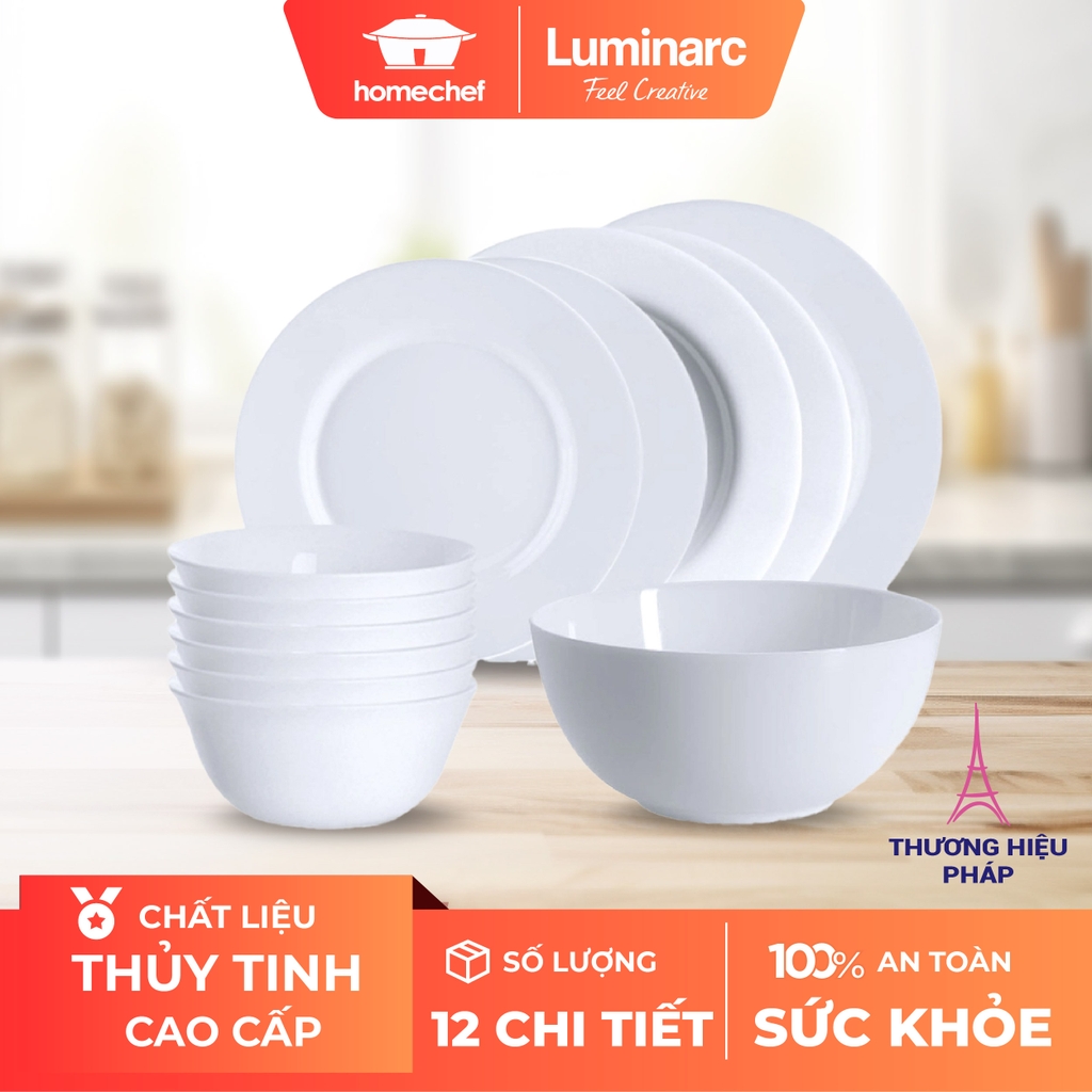 Bộ bát đĩa thủy tinh Luminarc 12 chi tiết với màu trắng tinh khiết, thiết kế theo phong cách truyền thống với kiểu dáng tròn và trơn nhưng không kém sang trọng và tinh tế. Với dòng sản phẩm này, phòng ăn nhà bạn sẽ trở nên trang nhã mà không kém phần tươi mới, giúp cho cả nhà bạn có được những bữa ăn ngon miệng và đẹp mắt.