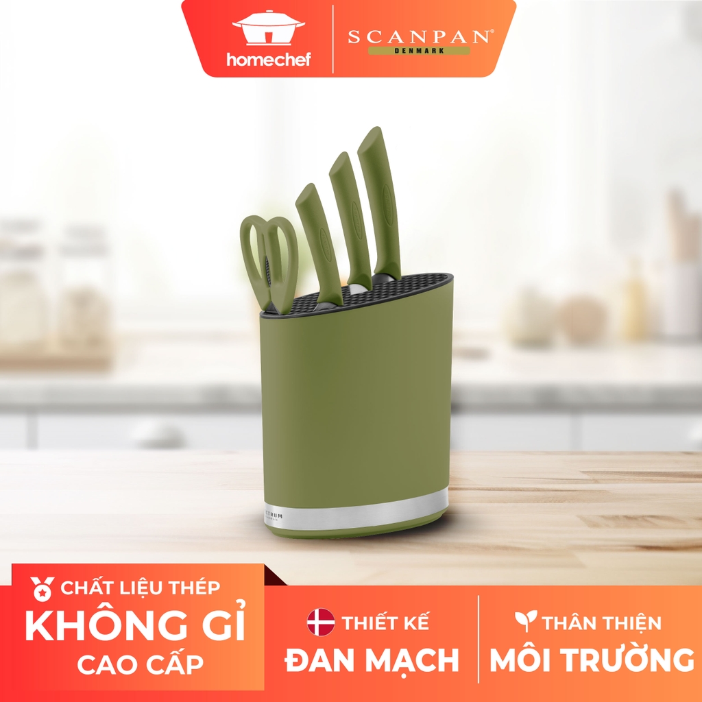 Bộ dao kèm ống cắm Scanpan Spectrum 5 chi tiết là lựa chọn tối ưu cho những ai đang tìm kiếm một bộ dụng cụ bếp vừa đầy đủ, vừa chất lượng cao. Với thiết kế tinh gọn, màu xanh lá bắt mắt, bộ sản phẩm không chỉ tiện lợi trong sử dụng mà còn tạo điểm nhấn thẩm mỹ cho không gian bếp.