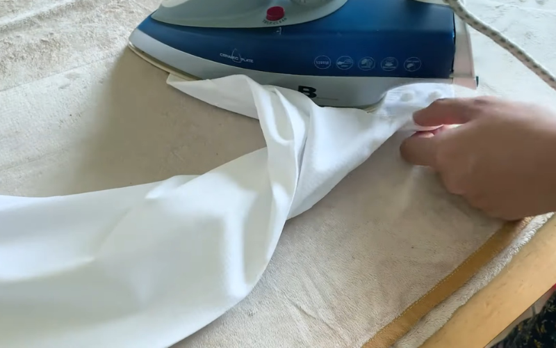 2. Ủi vai áo: Để ủi vai áo, đặt bàn ủi vào phần đầu vai và kéo đều ra phía tay áo. Nếu bàn ủi quá lớn không vào được, bạn có thể sử dụng một chiếc gối nhỏ hoặc vật dụng mềm tương tự để lót vào vai áo, giúp ủi phẳng phần cầu vai mà không làm hỏng form áo.