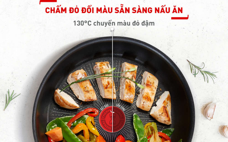 Thấu hiểu nỗi băn khoăn của người nội trợ, Tefal đã tích hợp công nghệ chấm báo nhiệt Thermo-Spot trên các sản phẩm chảo chống dính của mình. Chấm báo nhiệt này hoạt động như một "nhiệt kế" thông minh, chuyển màu khi chảo đạt đến nhiệt độ lý tưởng, báo hiệu cho bạn biết thời điểm hoàn hảo để cho thực phẩm vào.