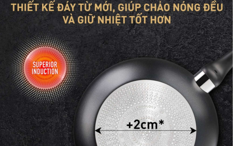 Nấu chín nhanh, đều nhiệt: Nhờ thiết kế đáy chảo với vòng nhiệt lớn và nhiều điểm tiếp nhiệt, chảo Tefal giúp nhiệt truyền đều khắp mặt chảo. Món ăn của bạn sẽ chín nhanh hơn, đều từ trong ra ngoài, giúp tiết kiệm thời gian và năng lượng.