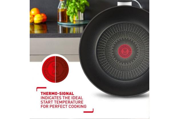 Chảo Tefal Unlimited 20cm được trang bị công nghệ báo nhiệt THERMO-SIGNAL độc quyền, giúp bạn nhận biết thời điểm chảo đã đạt độ nóng lý tưởng để bắt đầu nấu. Vòng tròn báo nhiệt ở giữa lòng chảo sẽ chuyển sang màu đỏ đậm khi chảo đủ nóng, giúp bạn không cần phải đoán mò, tránh tình trạng làm cháy chảo hay dầu sôi quá lâu, ảnh hưởng đến chất lượng món ăn.