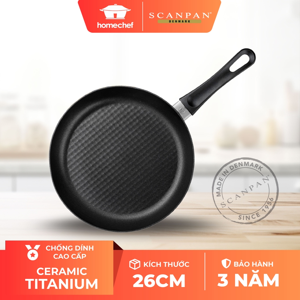 Tay cầm đúc liền và chống nóng: Chảo chống dính Scanpan sử dụng tay cầm BAKELITE được đúc liền với thân, tay cầm chắc chắn và chống nóng, chịu nhiệt ngay cả khi bạn sử dụng trên bếp ga hay trong lò nướng.