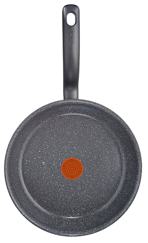 Bề mặt chảo chống dính có điểm báo nhiệt THERMO-SPOT báo nhiệt độ lý tưởng để chiên khi chấm đỏ ở giữa chảo chuyển sang màu đỏ.