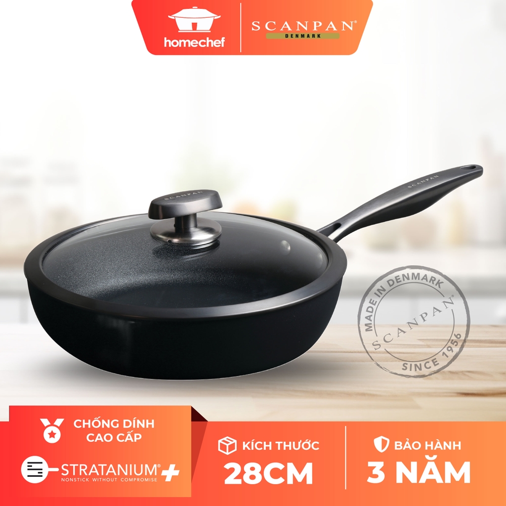 Chảo chống dính sâu lòng Scanpan PRO SB+ 5002102800 là sản phẩm cao cấp, được thiết kế dành cho cả gia đình và các đầu bếp chuyên nghiệp. Với công nghệ chống dính STRATANIUM+ tiên tiến, bề mặt chảo cực kỳ cứng chắc, hạn chế tối đa trầy xước và tăng khả năng chịu nhiệt, giúp việc nấu nướng trở nên dễ dàng và bền lâu. Hãy cùng Homechef tìm hiểu chi tiết về sản phẩm này nhé!