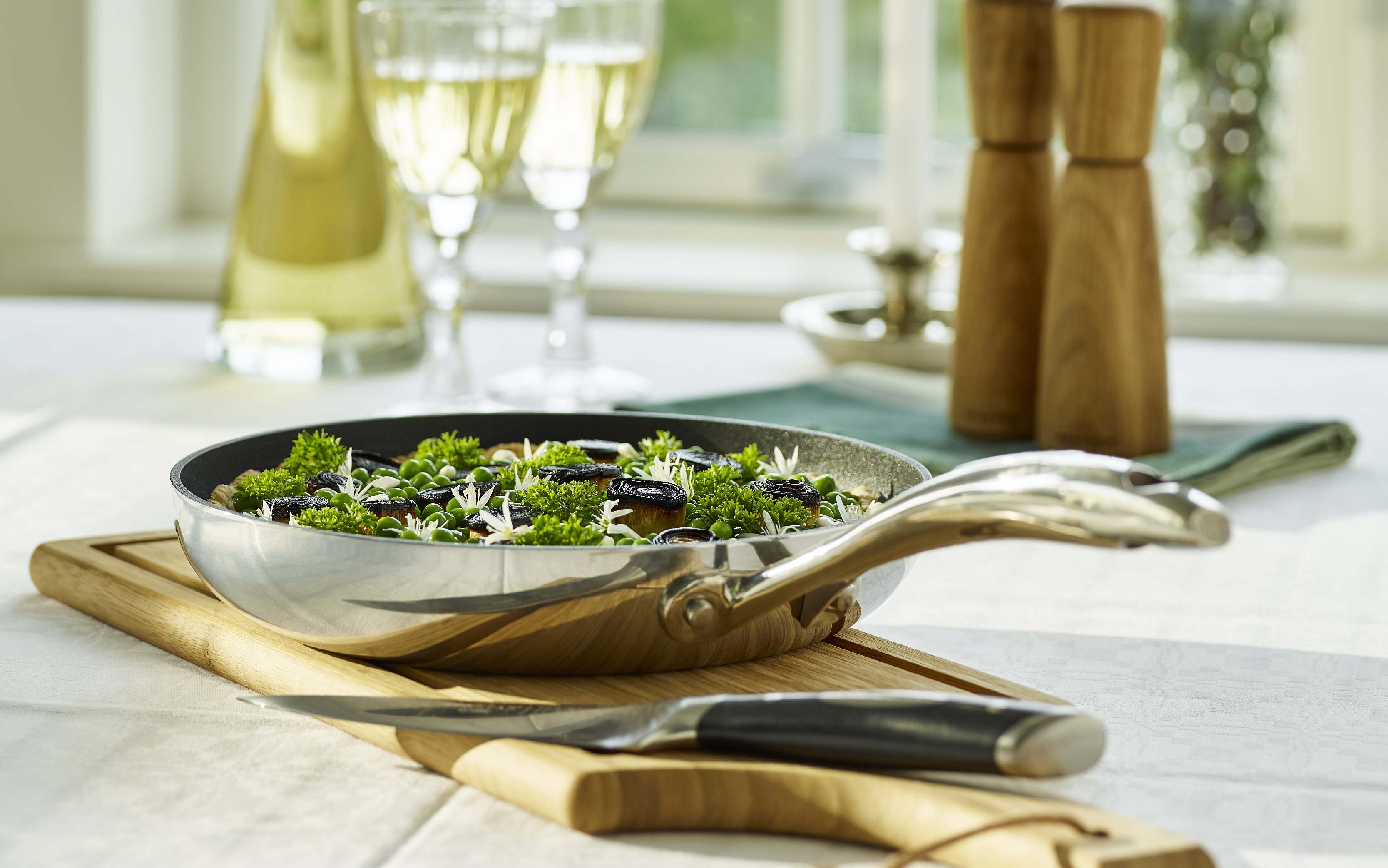 Với STRATANIUM+, khả năng chống dính được nâng lên một tầm cao mới, cho phép bạn chế biến các món ăn mà không cần hoặc chỉ cần rất ít dầu mỡ. Điều này không chỉ giúp món ăn ít béo hơn, tốt cho sức khỏe mà còn giữ trọn hương vị tự nhiên của nguyên liệu. Scanpan đặc biệt cam kết lớp chống dính này 100% không chứa PFOA và PFOS – hai hóa chất độc hại thường có trong một số loại chảo chống dính kém chất lượng. Với Scanpan HaptiQ, bạn hoàn toàn có thể yên tâm rằng mỗi bữa ăn bạn chế biến đều an toàn tuyệt đối cho gia đình mình.