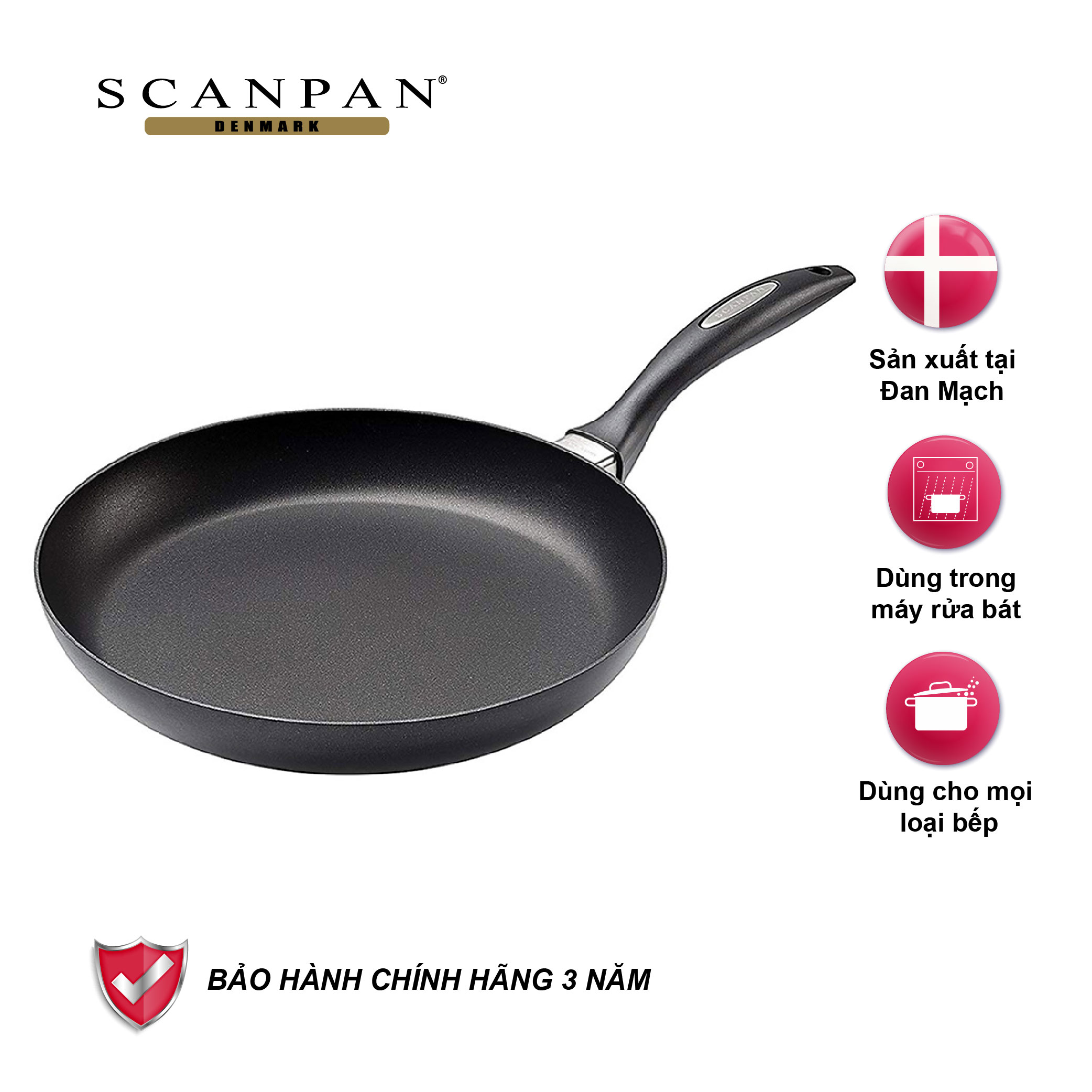 Sản phẩm Scanpan được bảo hành 3 năm, đổi mới cho các sản phẩm có hiện tượng phồng rộp, bong tróc chống dính (do lỗi của nhà sản xuất).