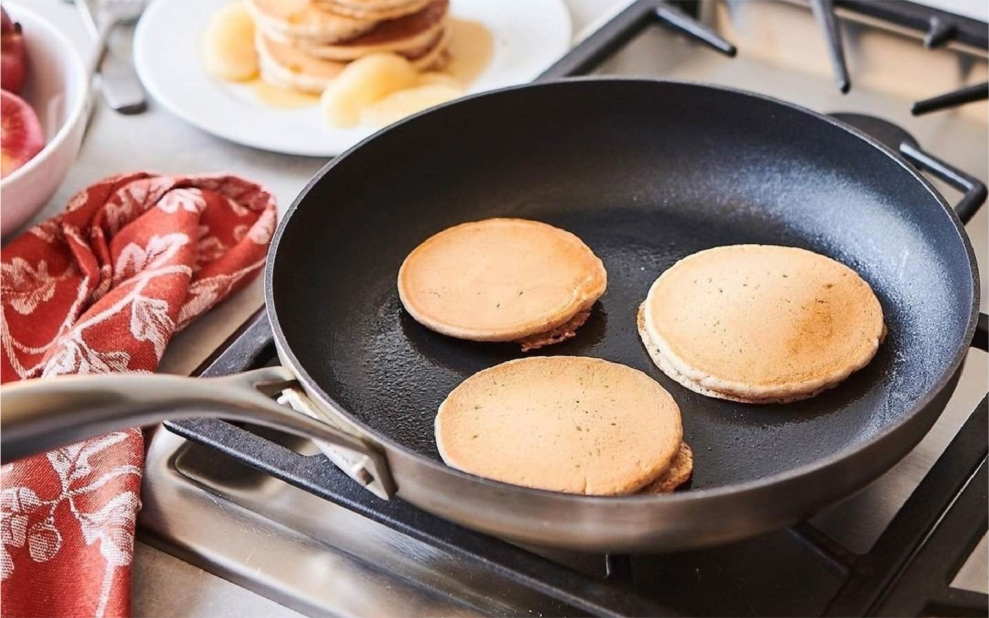 - Chỉ dùng nhiệt độ vừa phải: Nhờ khả năng truyền và giữ nhiệt tuyệt vời, bạn chỉ cần dùng mức nhiệt trung bình là đủ để nấu chín thực phẩm. Tránh đun chảo không trên bếp ở nhiệt độ cao quá lâu trước khi cho dầu/thức ăn vào, điều này có thể làm ảnh hưởng đến lớp chống dính.