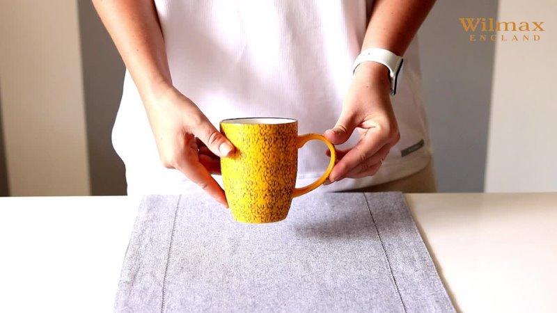 Cốc sứ có quai Wilmax, Color Booms, Splash, dung tích 460ml, màu vàng.