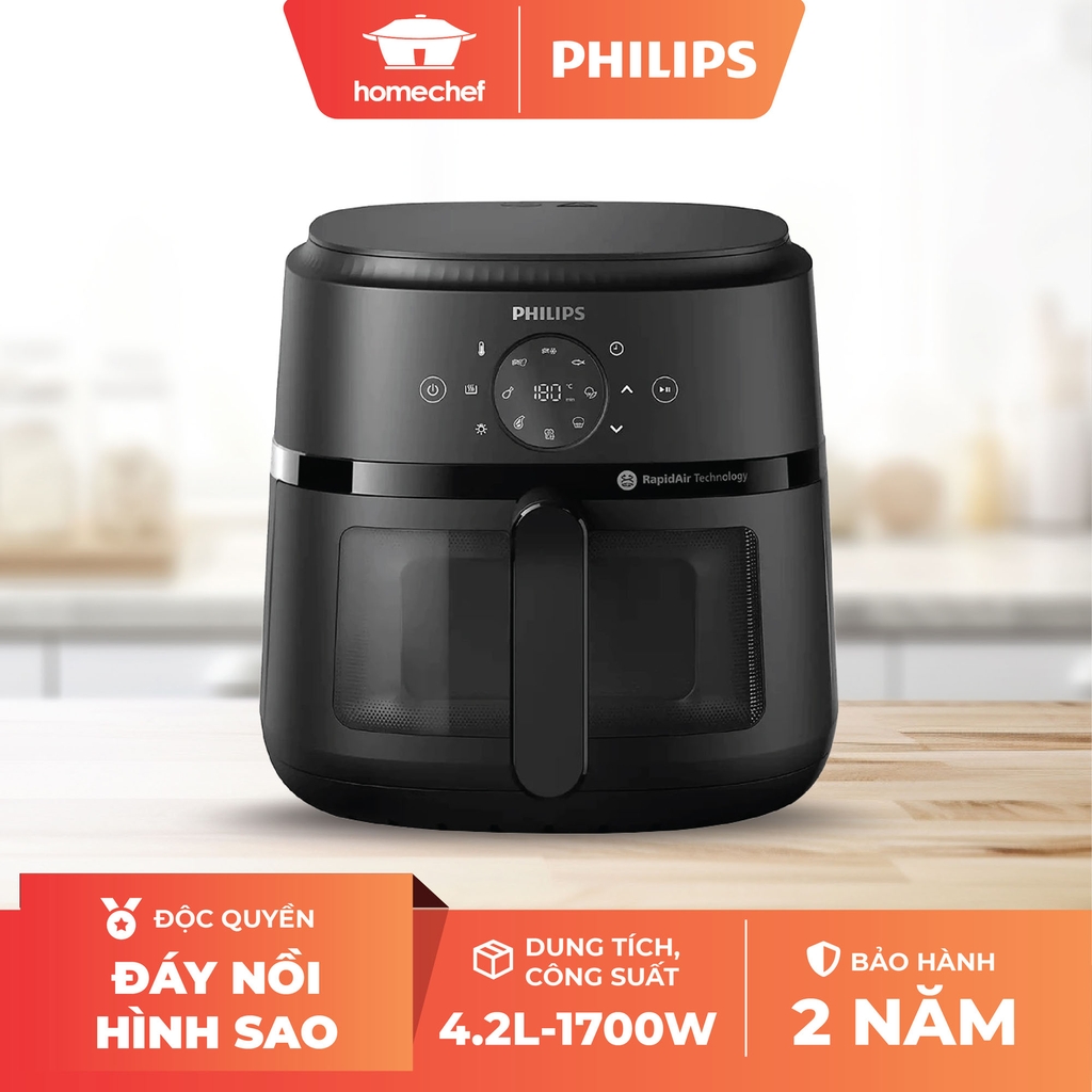 Công nghệ RapidAir với Đáy nồi hình sao độc đáo tạo ra luồng không khí hoàn hảo để nấu ăn nhanh chóng mọi lúc mà không dùng dầu hoặc dùng ít dầu. Món ăn ngon miệng, giòn bên ngoài và mềm bên trong.