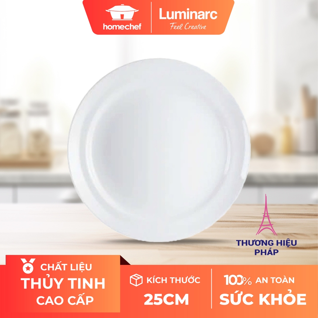 Đĩa thủy tinh nông lòng Luminarc Cannes 25cm V9735 với màu trắng tinh khiết, thiết kế theo phong cách truyền thống với kiểu dáng tròn và trơn nhưng không kém sang trọng và tinh tế. Với dòng sản phẩm này, phòng ăn nhà bạn sẽ trở nên trang nhã mà không kém phần tươi mới, giúp cho cả nhà bạn có được những bữa ăn ngon miệng và đẹp mắt.