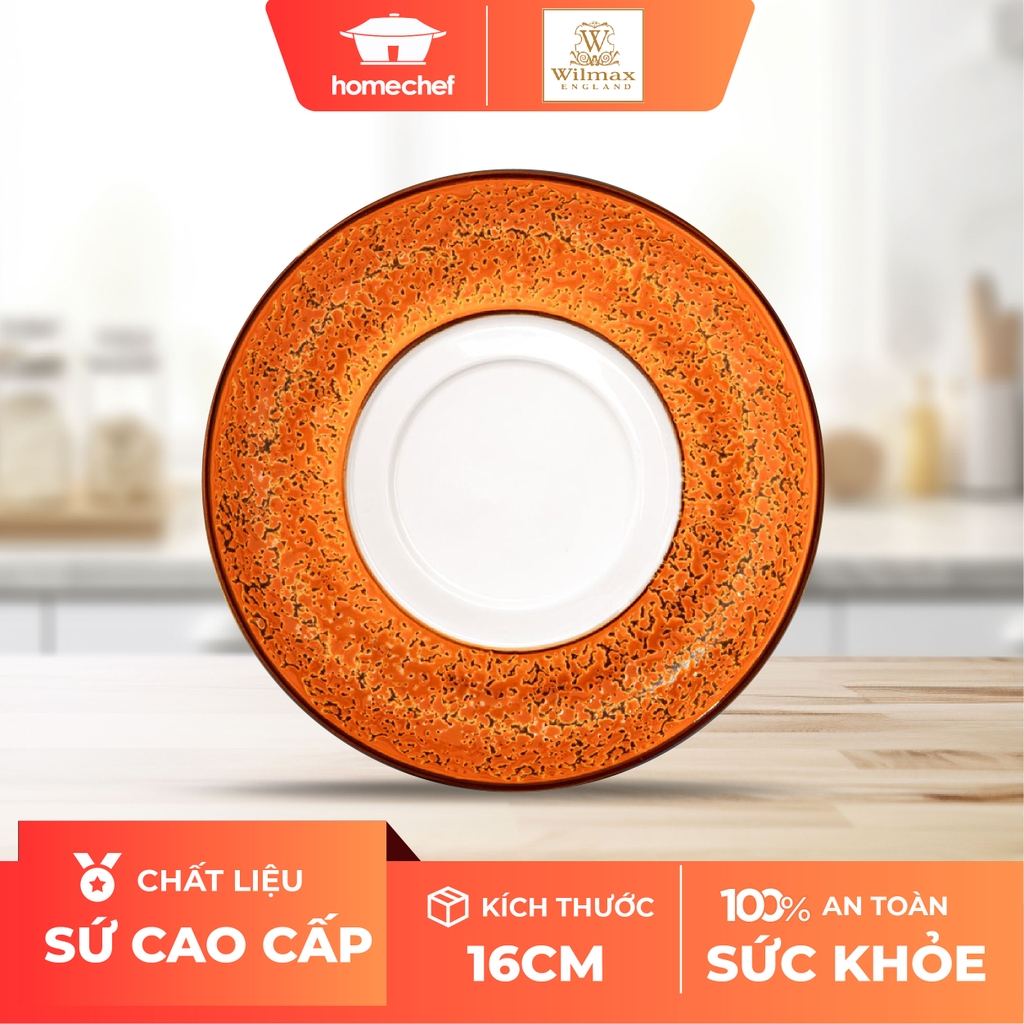 Đĩa sứ lót cốc/ bát Wilmax, Color Booms, Splash, đường kính 16cm, màu cam.