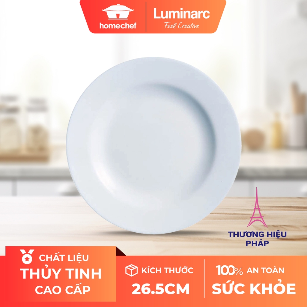 Đĩa thủy tinh Luminarc Everyday nông lòng 26,5cm với màu trắng tinh khiết, thiết kế theo phong cách truyền thống với kiểu dáng tròn và trơn nhưng không kém sang trọng và tinh tế. Với dòng sản phẩm này, phòng ăn nhà bạn sẽ trở nên trang nhã mà không kém phần tươi mới, giúp cho cả nhà bạn có được những bữa ăn ngon miệng và đẹp mắt.