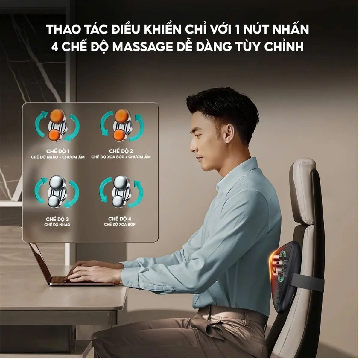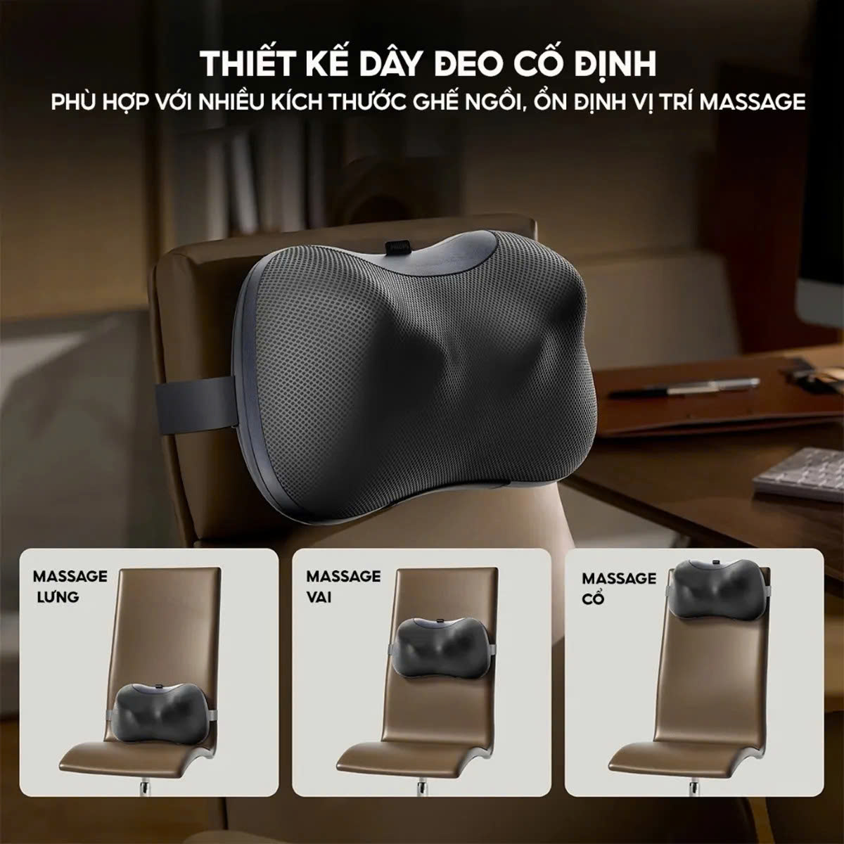 Sản phẩm sở hữu kích thước nhỏ gọn, dễ mang theo khi di chuyển và phù hợp để sử dụng ở nhiều không gian như phòng khách, phòng ngủ hoặc văn phòng làm việc. Dây đeo phía sau được thiết kế co giãn chắc chắn, giúp gối cố định vào mặt ghế, hạn chế trượt khi massage. Người dùng có thể gắn sản phẩm lên nhiều kiểu ghế khác nhau, từ ghế sofa đến ghế văn phòng, đảm bảo vị trí massage ổn định trong suốt quá trình thư giãn.