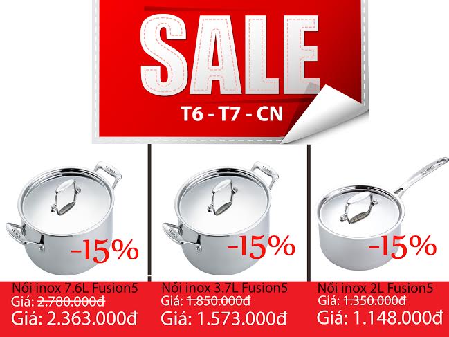 Mua nồi Fusion 7,6L; 3,7L; 2L giảm giá 15%