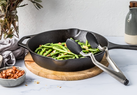 Đầu silicon giúp gắp và nâng tối ưu. Thiết kế đầu hình bánh quế của kẹp làm cho chúng lý tưởng để phục vụ trong khi đầu phẳng giúp gắp những loại thực phẩm nhỏ nhất một cách dễ dàng. Kẹp sẽ không làm xước đồ nấu nướng chống dính và chịu nhiệt đến 260°C/500°F.