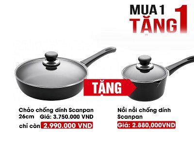 Khách hàng MUA 1 CHẢO CHỐNG DÍNH 26CM (26101204) - Nhập khẩu tại Đan Mạch sẽ được Giảm từ 3750000 ---> còn 2,990,000 TẶNG NGÀY 1 NỒI CHỐNG DÍNH 15cm (15001204) TRỊ GIÁ 2.880.000 Đ