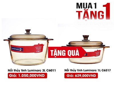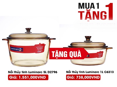 Nồi thủy tinh 3L tặng nồi thủy tinh 1L trị giá 629.000