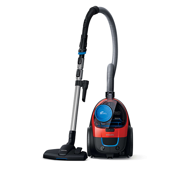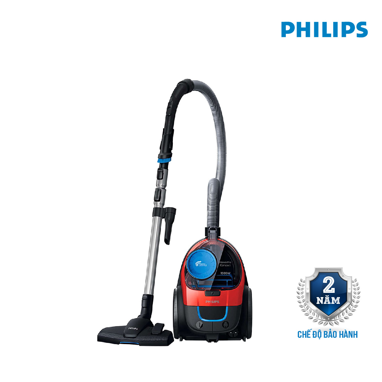 Máy hút bụi Philips kiểu dáng của máy hút bụi truyền thống nhưng nhỏ gọn hơn. Ống thu gọn 2 phần bằng kim loại, có thể hoạt động trong bán kính 9m. Đồng thời, được trang bị 2 bánh xe cao su lớn để thuận tiện cho việc di chuyển khắp nơi trong căn nhà.
