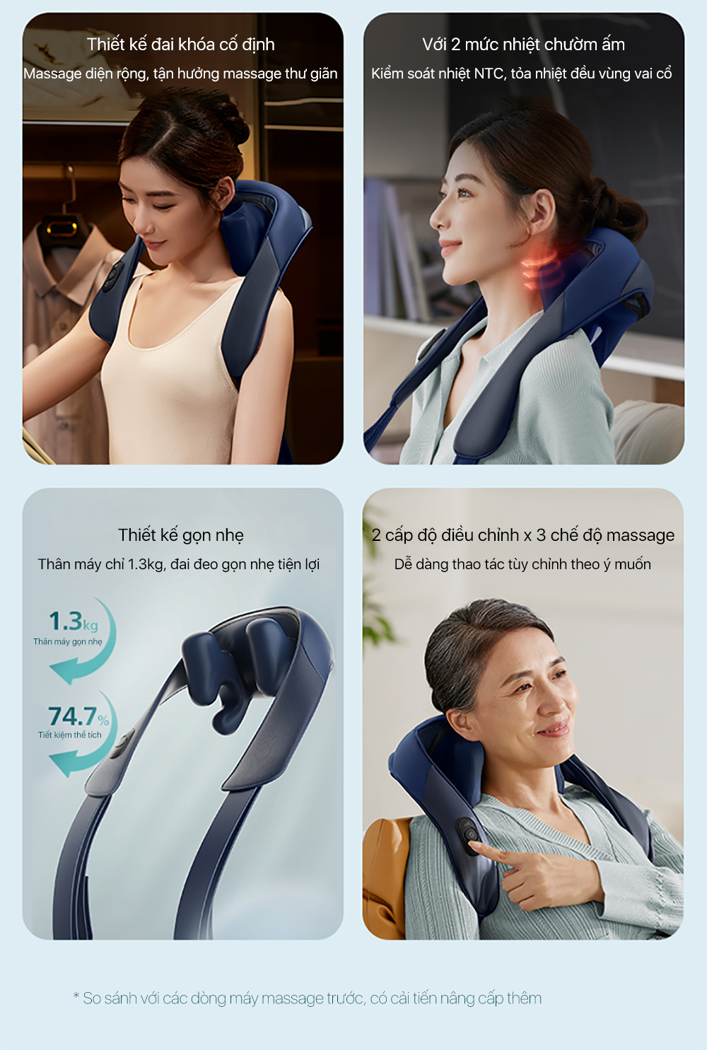 Thiết kế tiện dụng, 3 chế độ massage dễ dàng tuỳ chỉnh