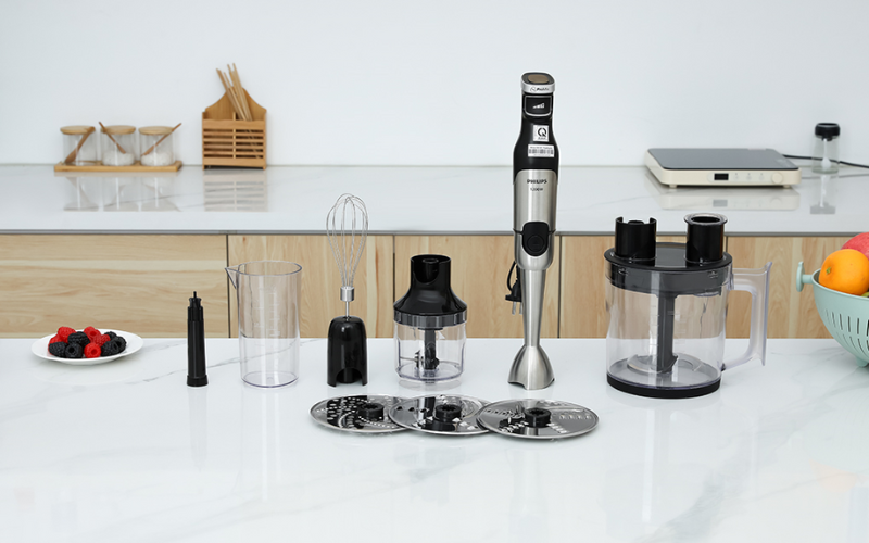 Máy xay cầm tay Philips HR2685/00 gây ấn tượng với công suất mạnh mẽ lên đến 1200W, đáp ứng tốt nhu cầu xay nhanh và nhuyễn nhiều loại thực phẩm. Máy được trang bị công nghệ xay ProMix độc quyền, kết hợp động cơ mạnh, lưỡi dao thiết kế đặc biệt và tấm chắn chống văng, giúp đảo trộn nguyên liệu hiệu quả, xay mịn đồng đều mà vẫn gọn gàng, dễ vệ sinh. Bên cạnh đó, công nghệ SpeedTouch cho phép người dùng điều chỉnh tốc độ linh hoạt ngay trong quá trình xay, dễ dàng kiểm soát độ mịn theo ý muốn – bắt đầu chậm để tránh bắn nguyên liệu, sau đó tăng dần lực nhấn để đạt hiệu suất tối ưu. Máy đi kèm cối cắt nhỏ gọn, phù hợp để xay rau thơm, các loại hạt, thịt và nhiều thực phẩm khác, mang đến sự tiện lợi và đa năng cho gian bếp hiện đại.