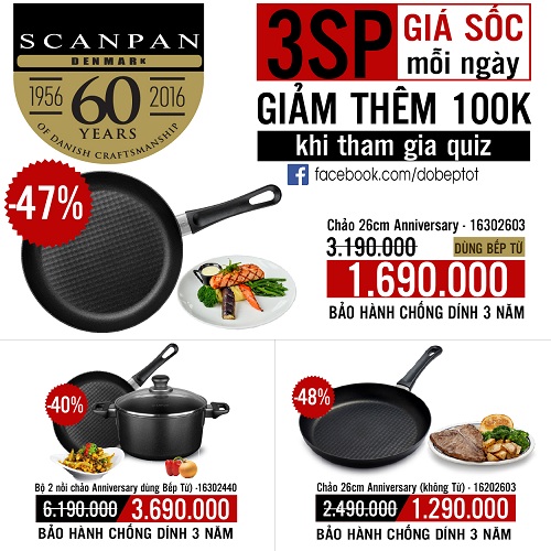 ĐẶC BIỆT: Truy cập https://www.facebook.com/dobeptot/ cùng tham gia Quiz để được giảm thêm 100.000 khi mua các sản phẩm Scanpan trong chương trình giá sốc.