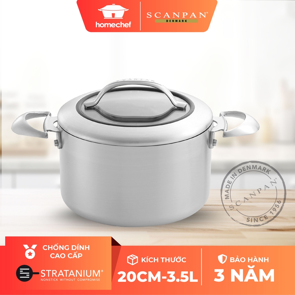 Truyền nhiệt đều, giữ nhiệt lâu: Nồi chảo chống dính Scanpan được đúc liền thân và đáy 7 lớp, cho phép phân bổ nhiệt đều trong quá trình nấu và tiết kiệm năng lượng.