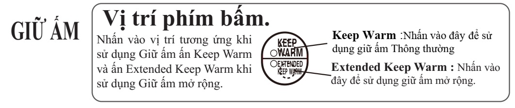 + Giữu ấm thông thường " Keep warm" - Nồi sẽ tự động chuyển chế độ giữ ấm thông thường ngay sau khi cơm nấu chín trong 8h