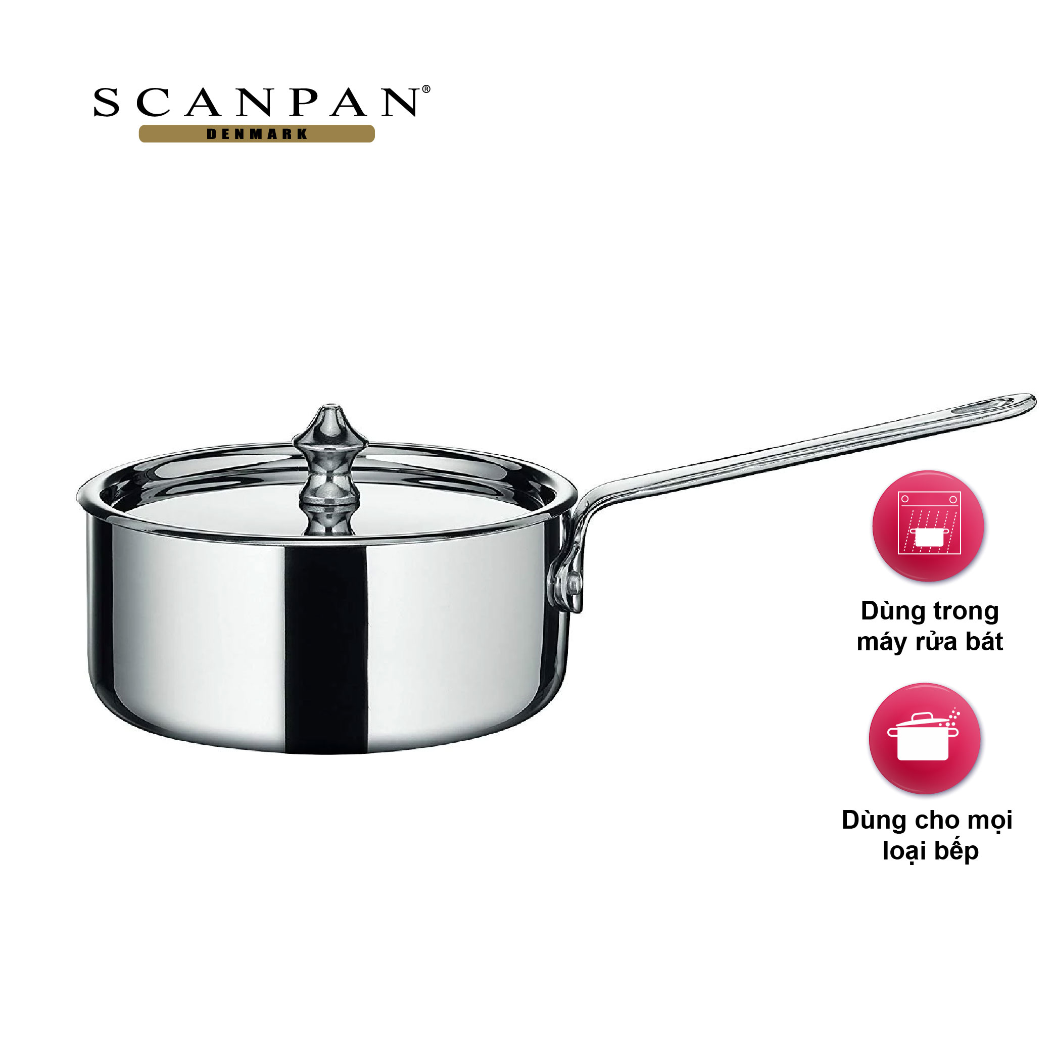 Nồi inox quấy bột Scanpan Maitre’D được thiết kế theo tiêu chuẩn Đan Mạch với cấu trúc đúc liền thân – đáy 3 lớp, giúp truyền nhiệt nhanh, ổn định và giữ nhiệt lâu hơn so với các loại nồi thông thường. Nhờ công nghệ đúc nén hiện đại, nhiệt được lan tỏa đều khắp đáy và thành nồi, hạn chế tối đa hiện tượng cháy dính, giúp món bột, cháo loãng hay nước sốt luôn đạt độ mịn và chín đều.