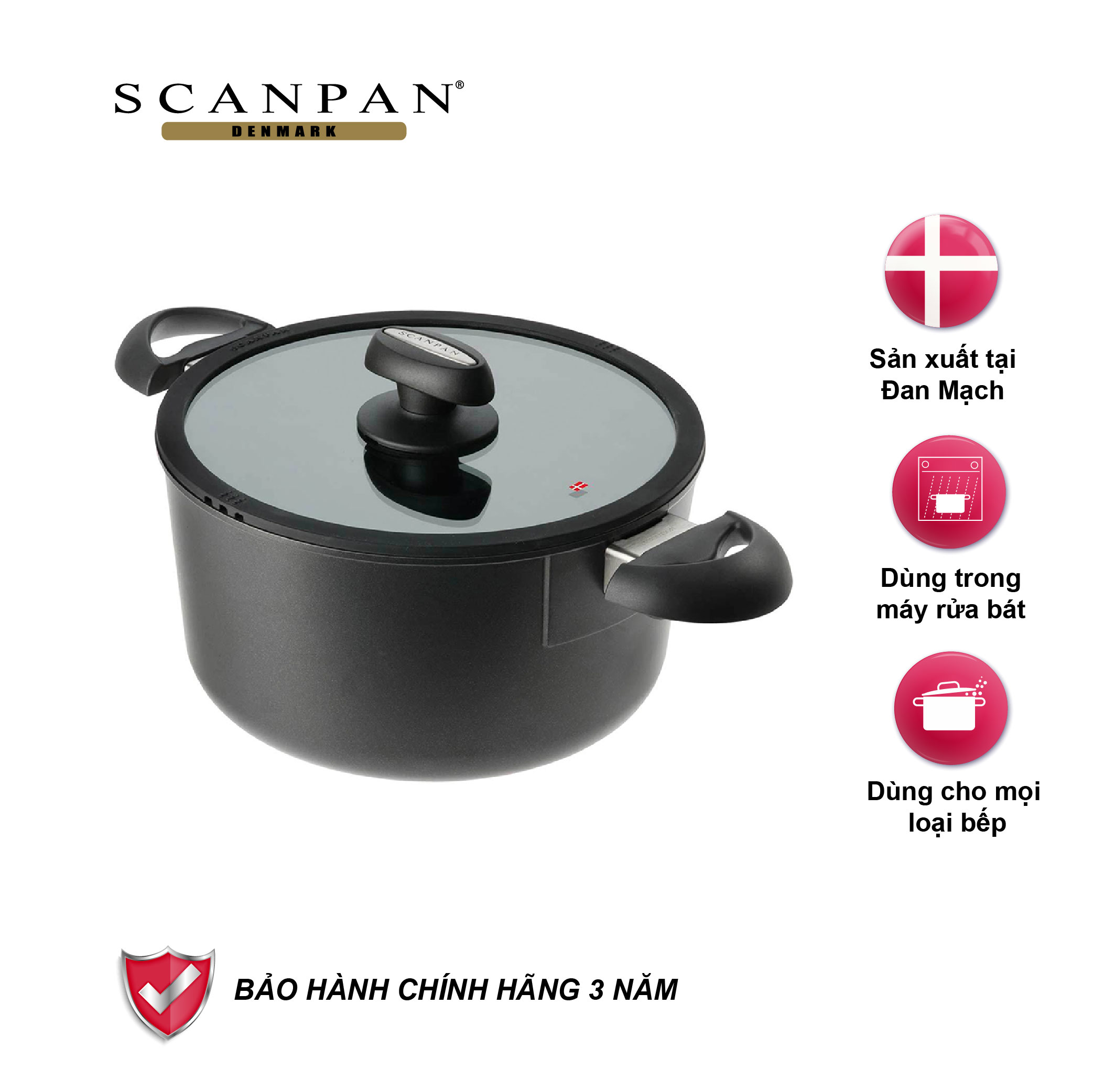 Sản phẩm Scanpan được bảo hành 3 năm, đổi mới cho các sản phẩm có hiện tượng phồng rộp, bong tróc chống dính (do lỗi của nhà sản xuất).