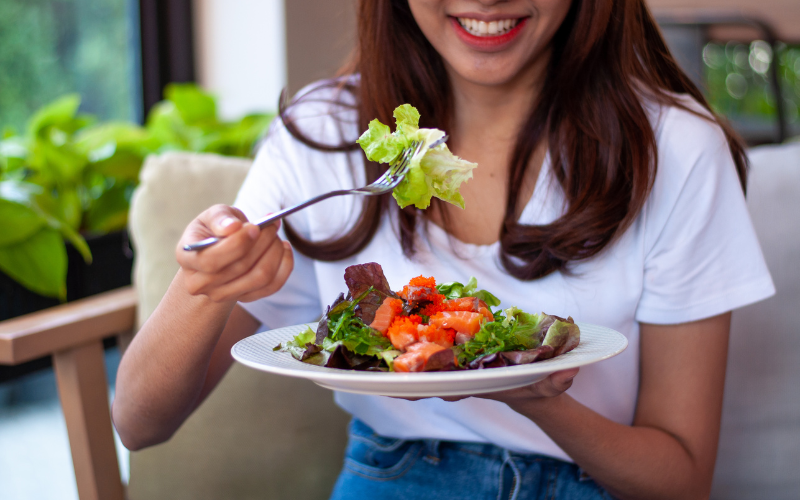 Ngày Tết thường ăn uống thất thường và dễ ăn quá tay. Việc ăn chậm, nhai kỹ sẽ giúp não bộ kịp nhận tín hiệu no, từ đó hạn chế nạp dư năng lượng. Bạn nên chia nhỏ khẩu phần, ăn vừa đủ mỗi bữa để tránh tích tụ calo và cảm giác đầy bụng, khó tiêu.